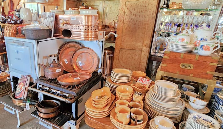 In housewares, find the most charming copper pots and pans, shining silver, colorful glasses, fine china and delectable dishes, transferware, and more.