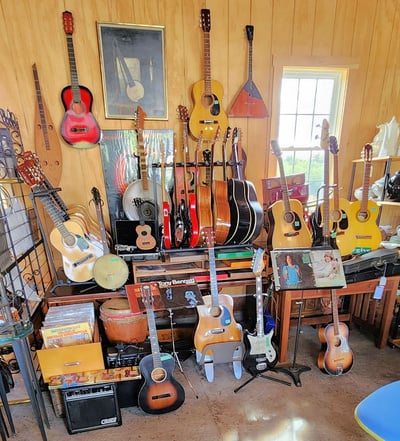 For the musically-minded, check out the guitars and musical instruments, many restored by our trusted expert. Vintage records, a curated selection, plus a list of albums we can easily access.